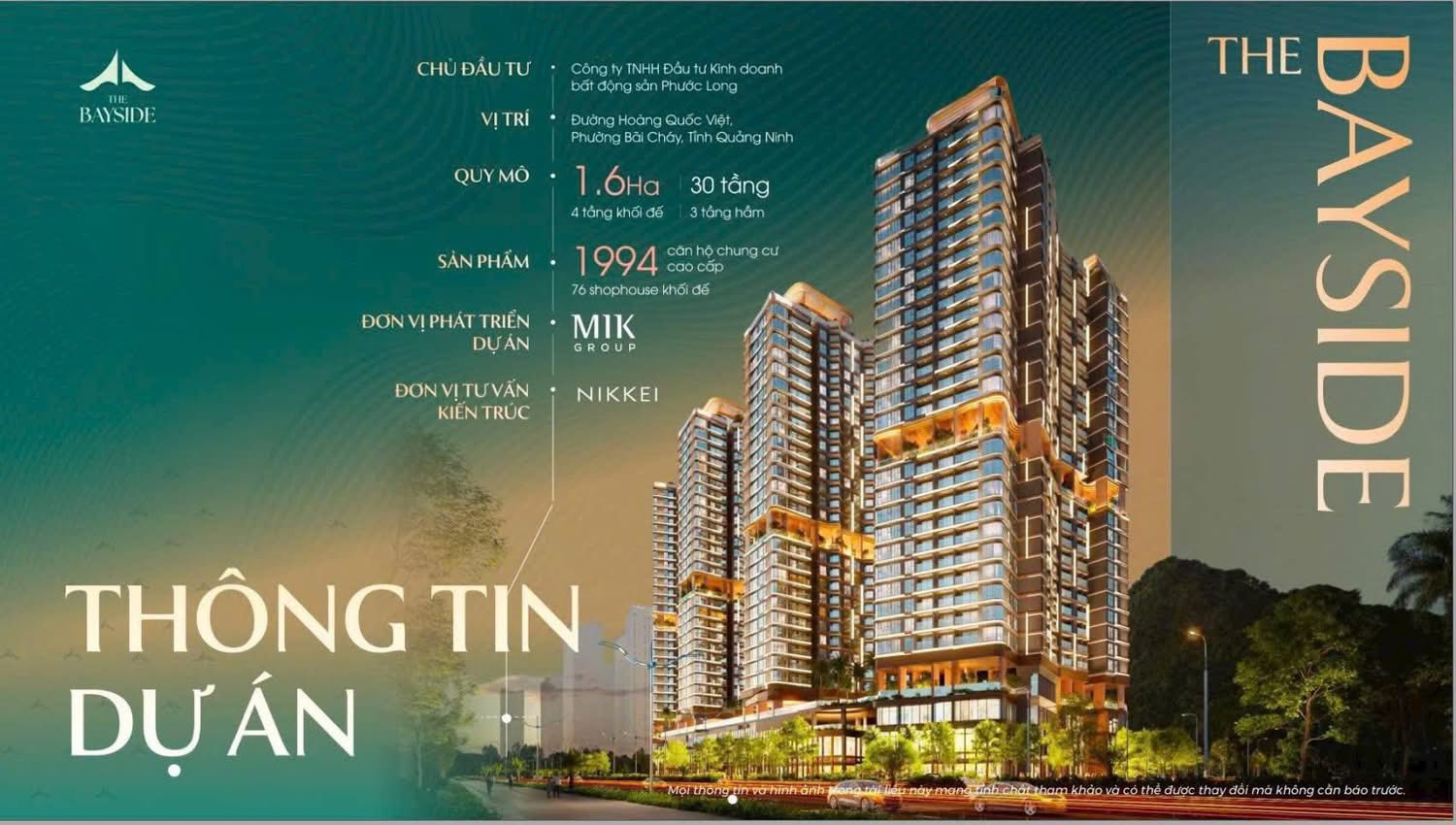 The Bayside được phát triển bởi MIK Group – chủ đầu tư uy tín với hàng loạt dự án cao cấp như Inter Continental Residences Halong Bay và Grand Bay Ha Long. Dự án tọa lạc tại Bán đảo 3 thuộc khu đô thị Halong Marina, vị trí chiến lược kết nối trực tiếp giữa Bãi Cháy và Tuần Châu.